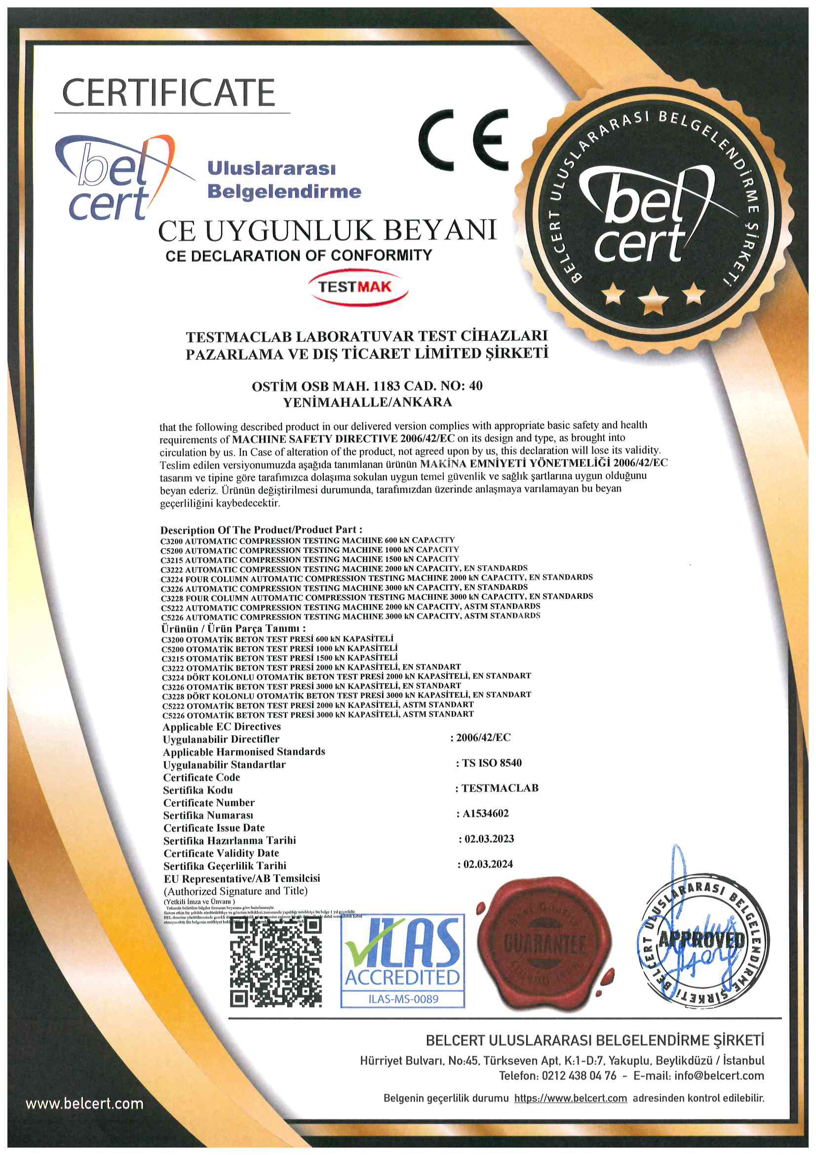 GO CERTIFICATEHYDRAULIC UNIVERSAL TENSILE AND COMPRESSION TEST MACHINES
