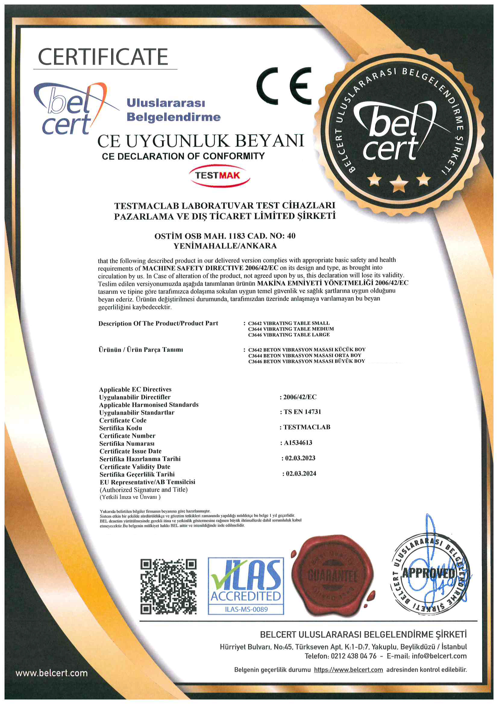 GO CERTIFICATECEMENT VIBRATING MACHINE