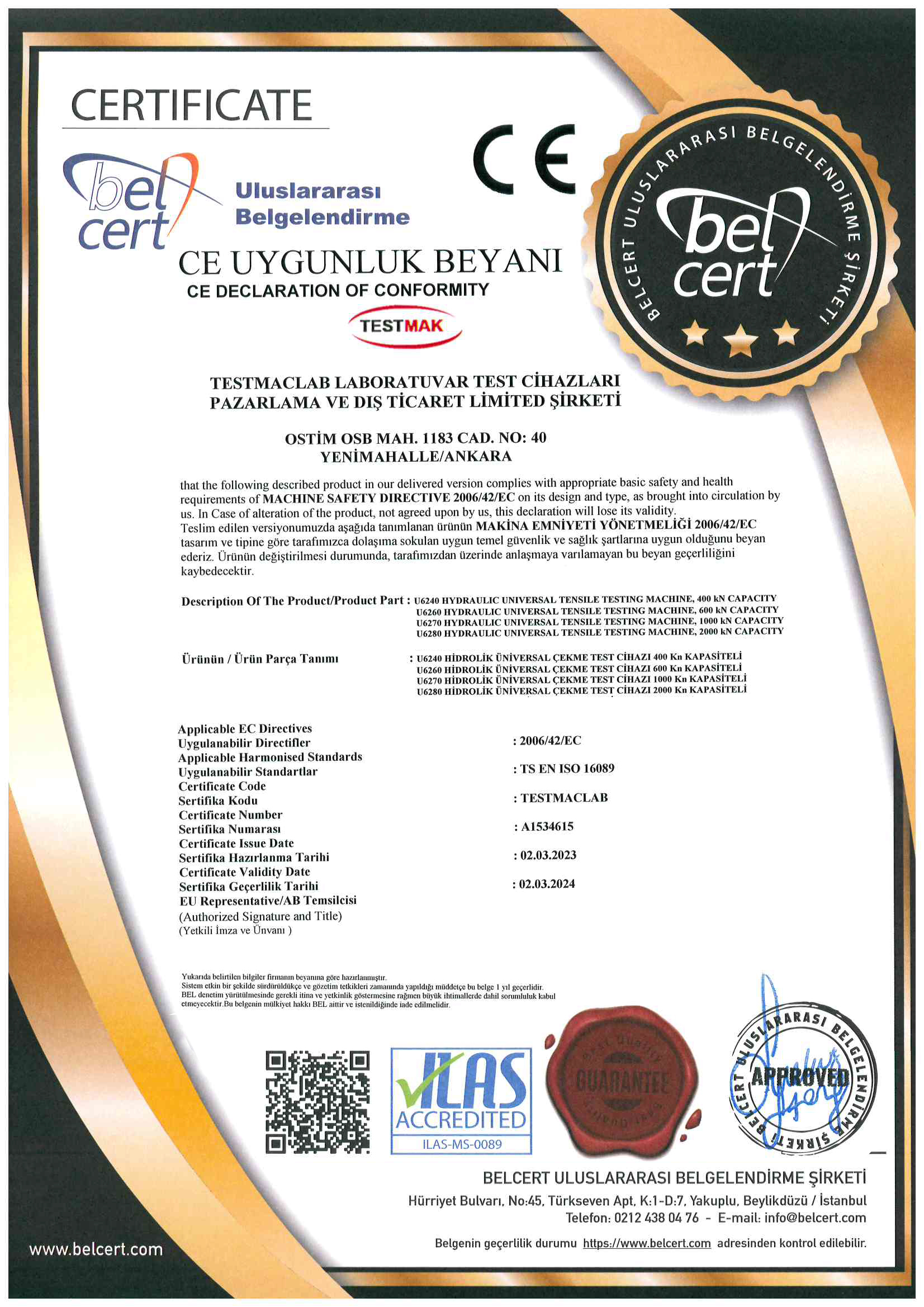 GO CERTIFICATEHYDRAULIC UNIVERSAL TENSILE AND COMPRESSION TEST MACHINES
